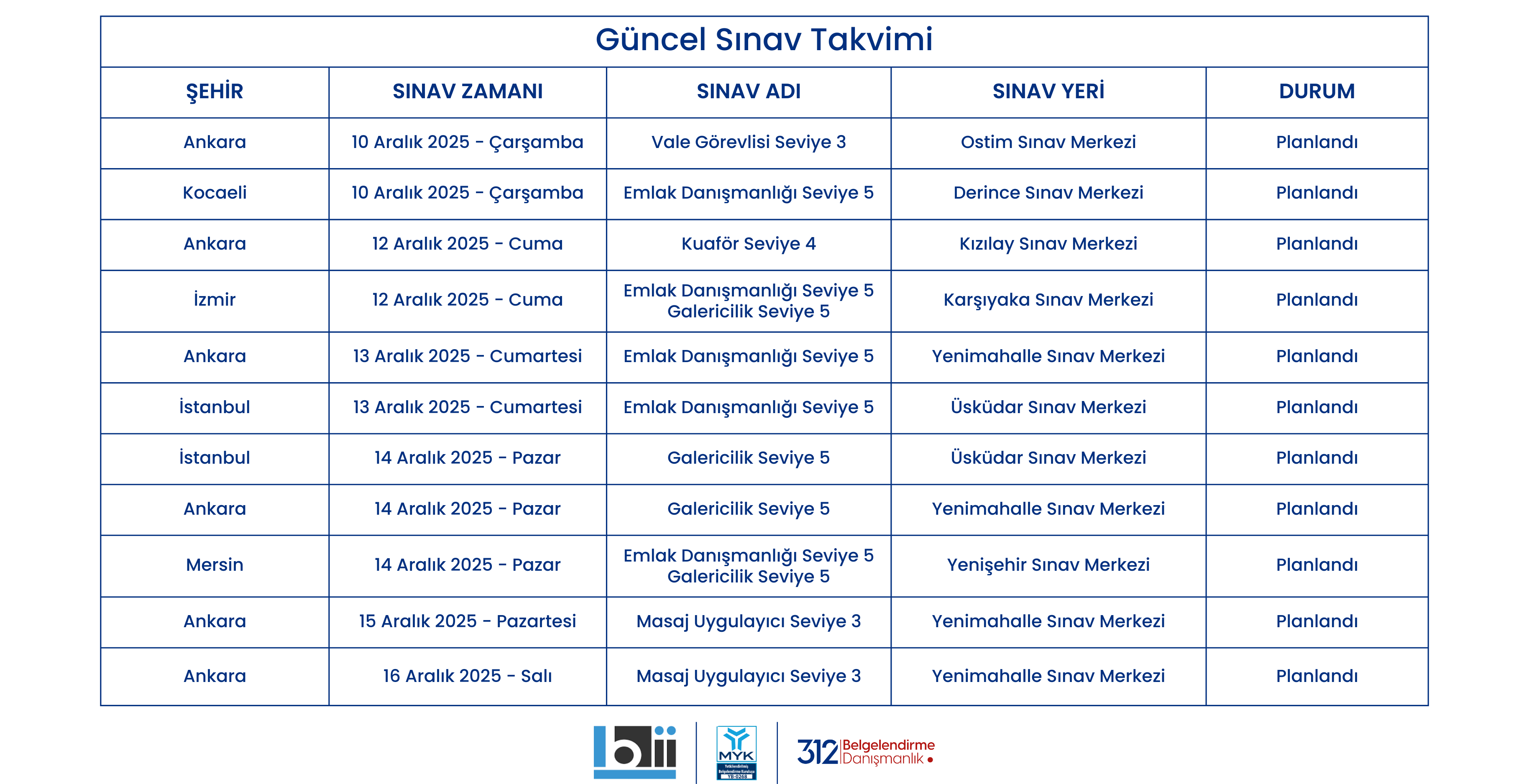 09-12-2025 / MYK Sınav Tarihi Duyuruları